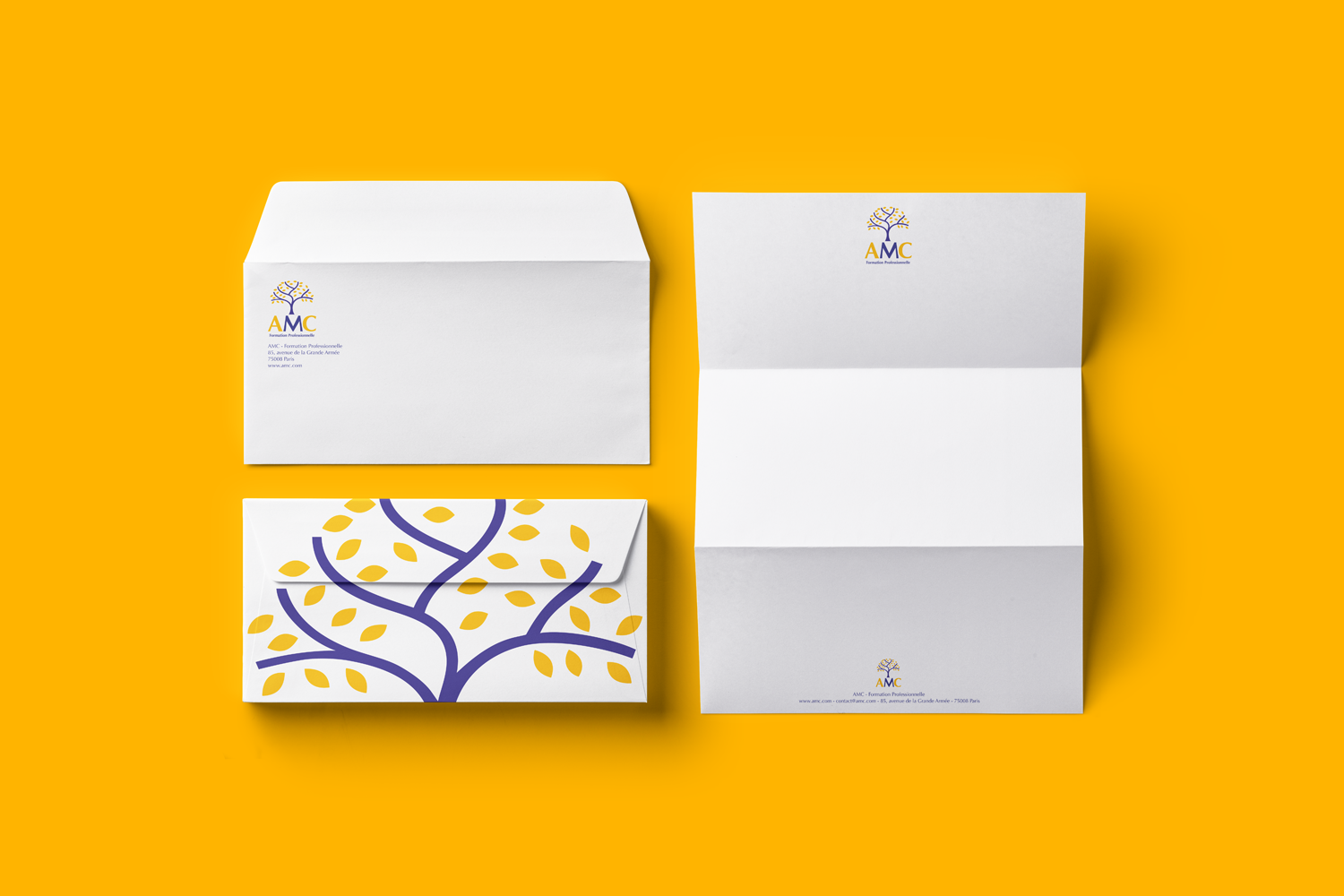 Création de l'identité visuelle d'AMC, organisme de formation professionnelle, développée autour du symbole de l'arbre afin d'incarner la transmission des savoirs et le développement des compétences.