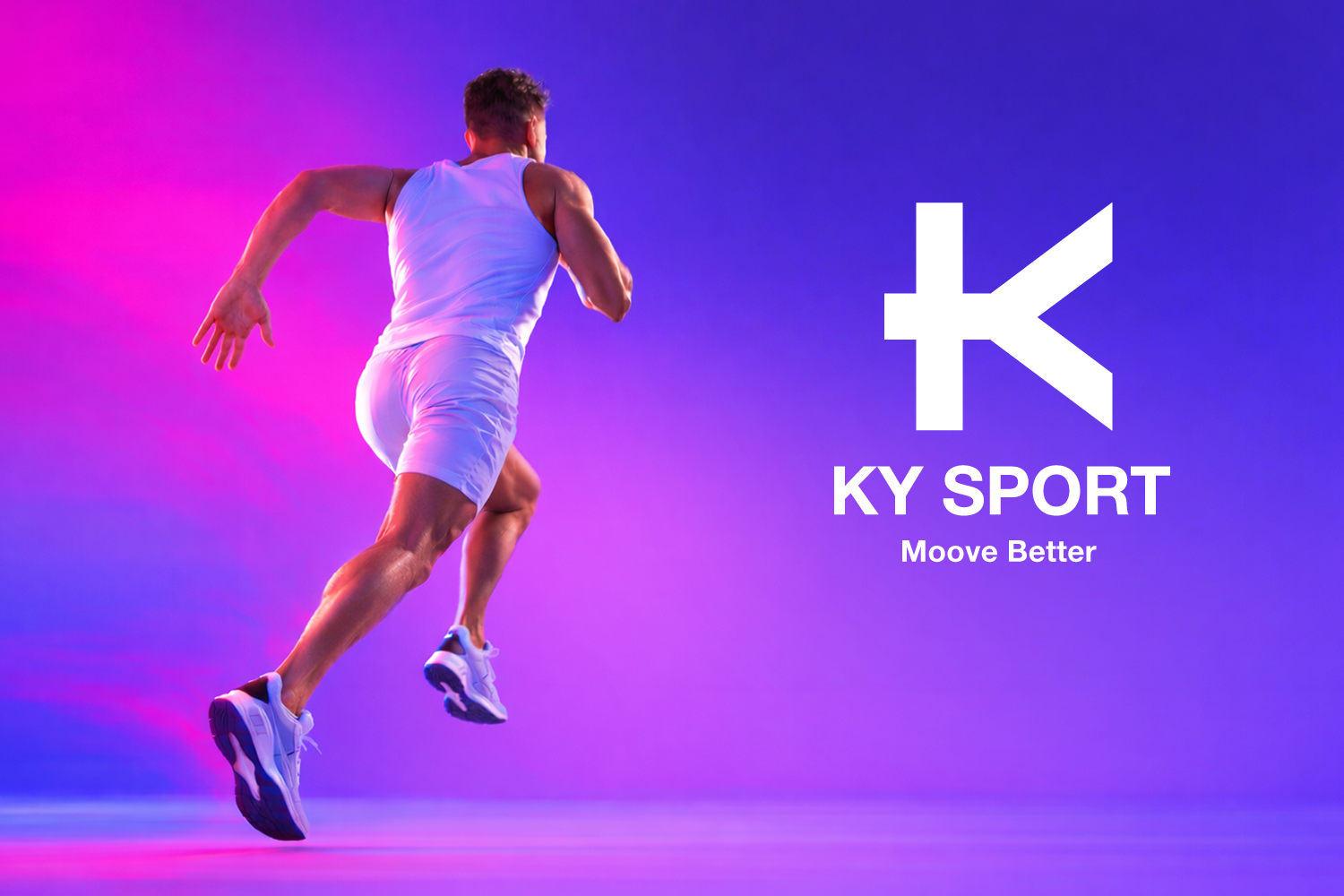 L'identité visuelle de KY Sport allie dynamisme et modernité, avec des couleurs vives et et des lignes tranchantes évoquant l'énergie du sport. Le logo, épuré, construit avec les deux lettre K et Y, reflète performances et accessibilité, séduisant une clientèle active et tendance.