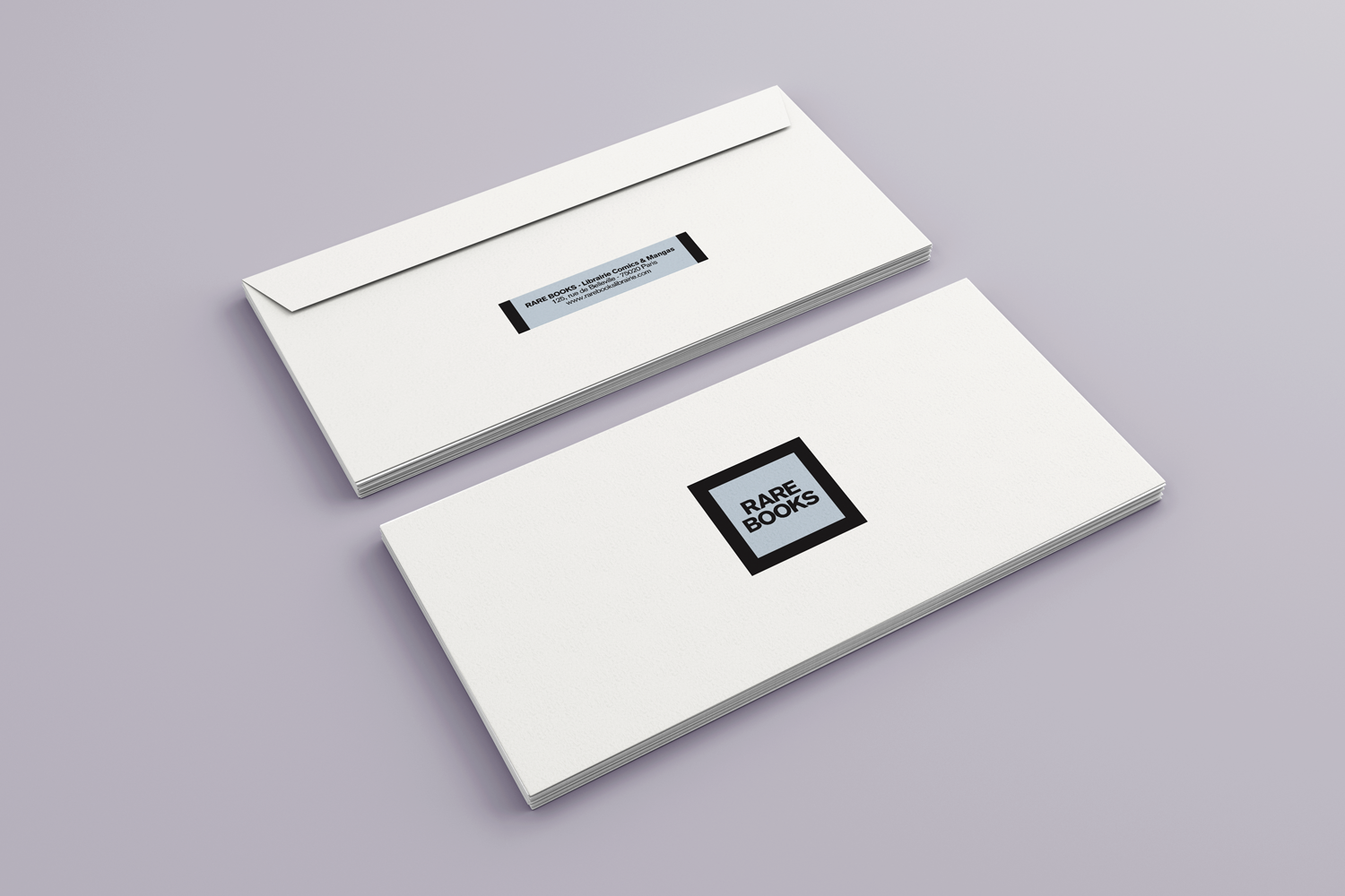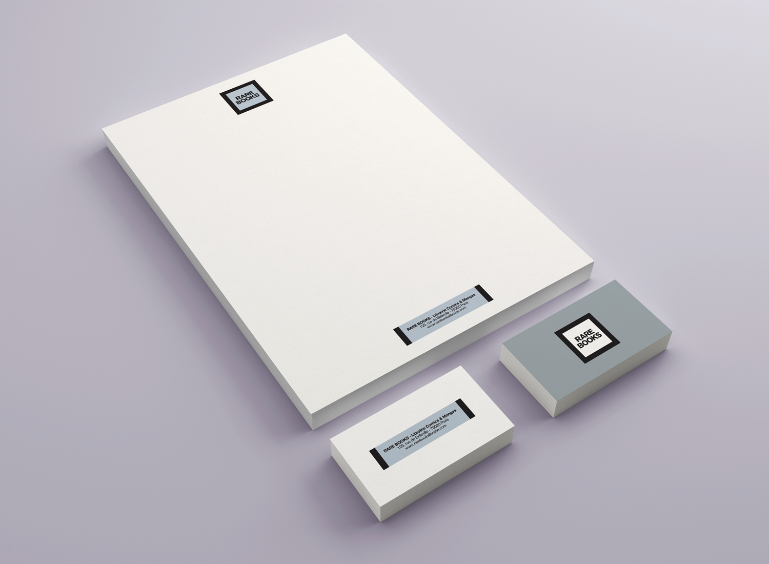 Création de l'Identité visuelle, branding, plaquette de présentation et produits de merchandising pour Rare Books
